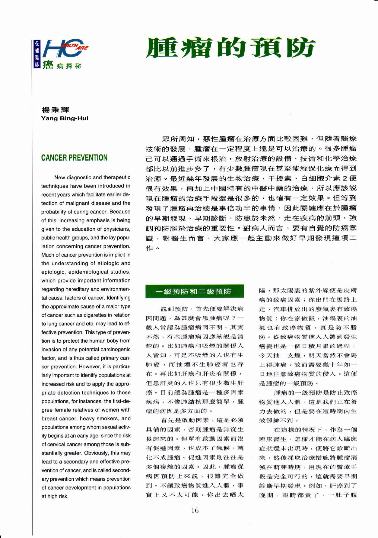 vention ol cancer, and